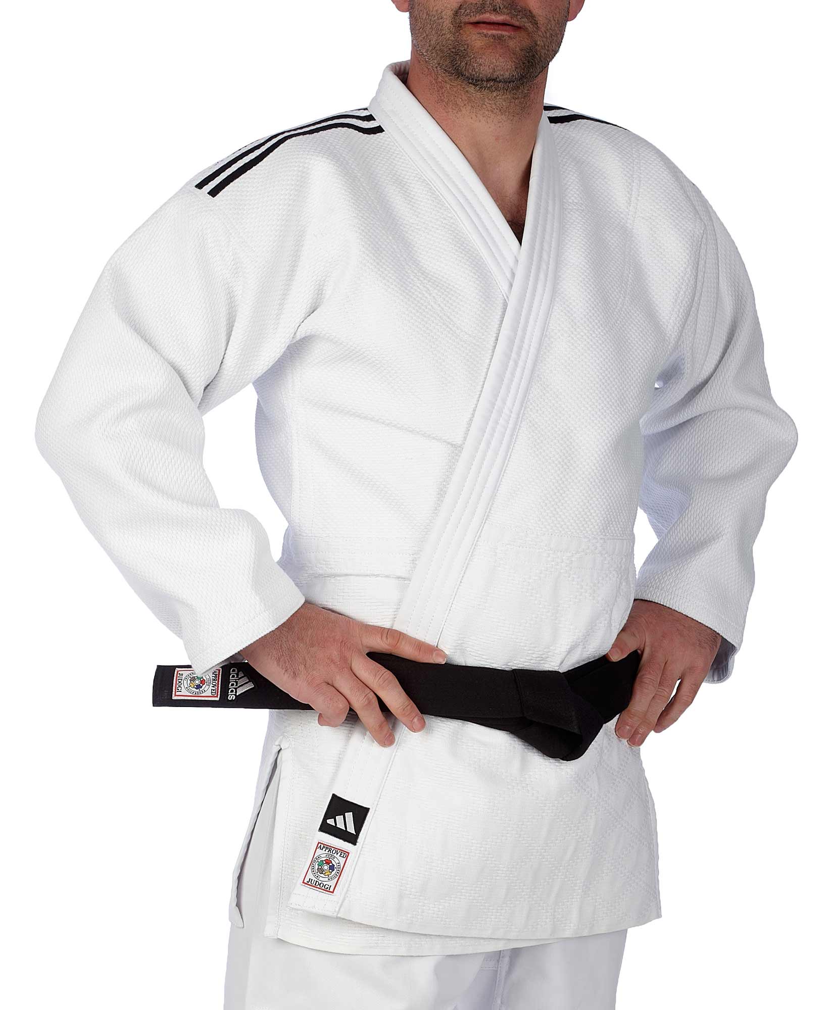 adidas judo jacket Champion III-2 JIJF, white/black stripes regular cut
