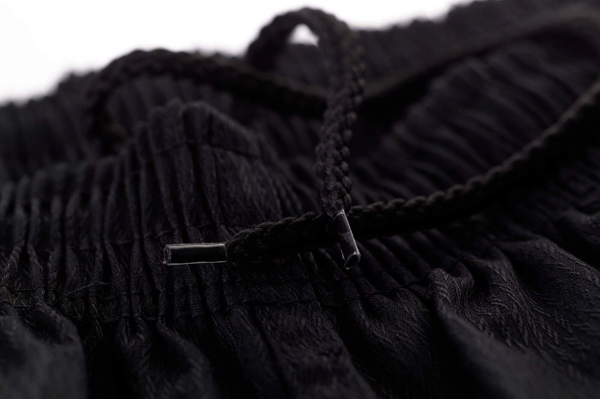 Pantaloni cu talie elastică și șireturi suplimentare. Capetele mânecilor și picioarelor sunt cusute de 9 ori.