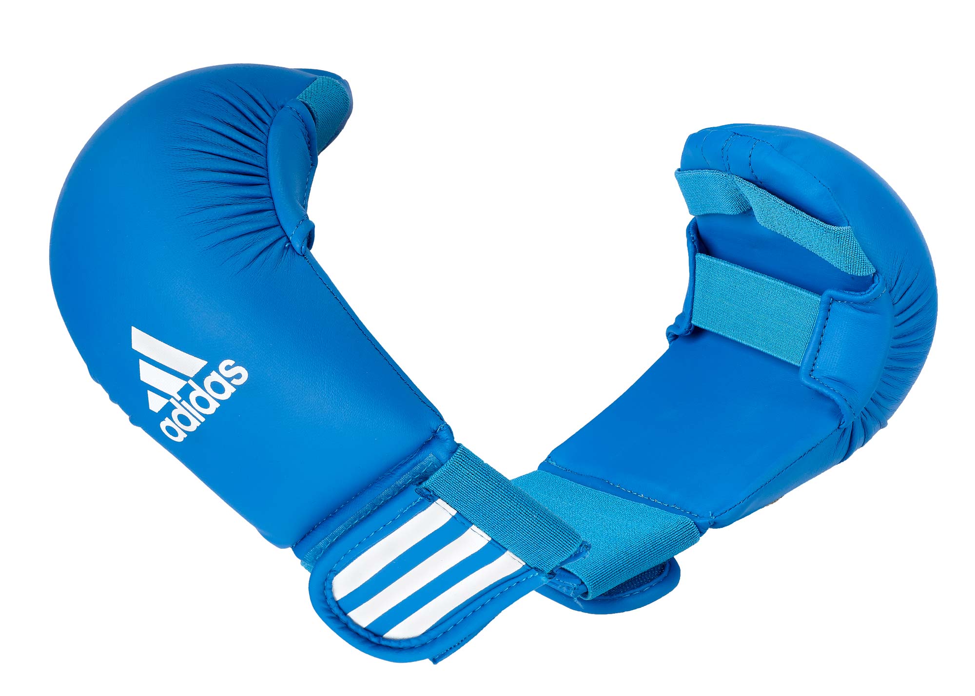 Protectia pumnului de karate adidas Kumite vine în piele artificială albastră.