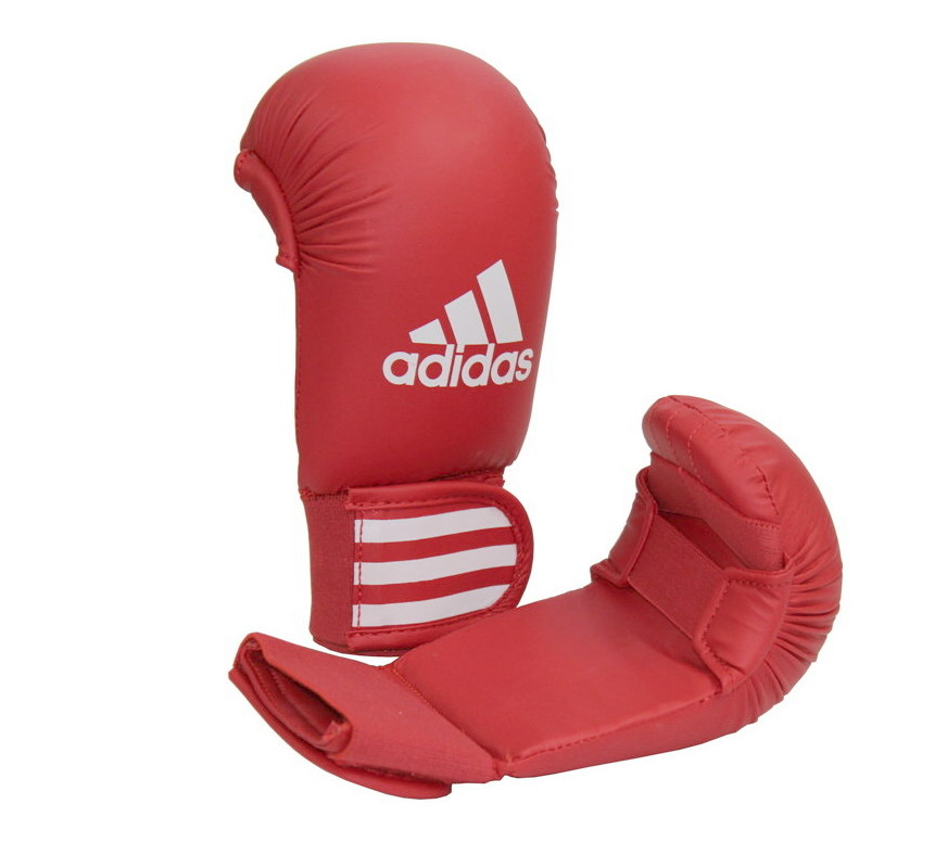 Protectia pumnului de karate adidas Kumite vine în piele artificială roșie.